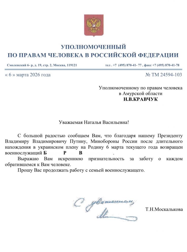 👉 Учитывая сложность ситуации и удаленность воинской части, региональный омбудсмен Наталья Кравчук обратилась за содействием к Уполномоченному по правам человека в РФ Татьяне Москальковой.