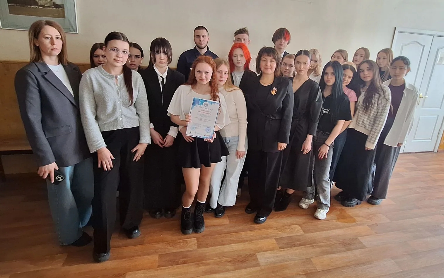 Нынешний визит в колледж носил особый характер и объединил в себе образовательную и торжественную части. Помимо обсуждения актуальных юридических вопросов, сотрудник аппарата уполномоченного выполнил почетную миссию — вручил студентке Диане Резниковой сертификат участника Окружной олимпиады «Правовой олимп».
