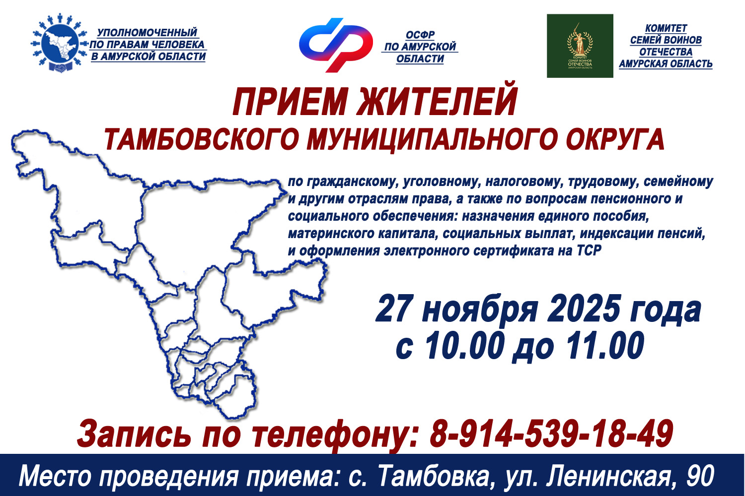 27 ноября с 10.00 до 11.00 прием жителей Тамбовского муниципального округа